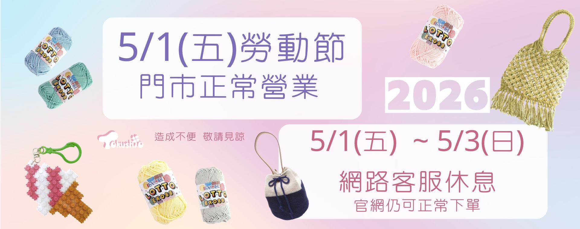 最新 購物中心 夏紗毛線、毛線編織工具、DIY材料包、串珠材料、五金配件、中國結線材、各式線材、手把織帶、手作素材、花材緞帶類、拼布用品、服裝材料配件、皮雕用品、五金工具、收納用品. 教學課程 ★毛線基礎編織現場教學-釘板、城堡、棒針、★毛線編織假日班(講師教學)、★中國結編結手環課程(講師教學)、★串珠飾品課程(講師教學) 最新活動 27 【4月德昌會員日】 27 【2026兒童節/清明節-服務時間異動公告】 LINE 客服ID:@046kmlde