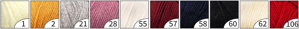 100%壓克力的線材,材質不會扎肌膚,色彩繽紛,價格超實惠親民,多用於編織娃娃、衣物、帽子、蓋毯等各式保暖小物。