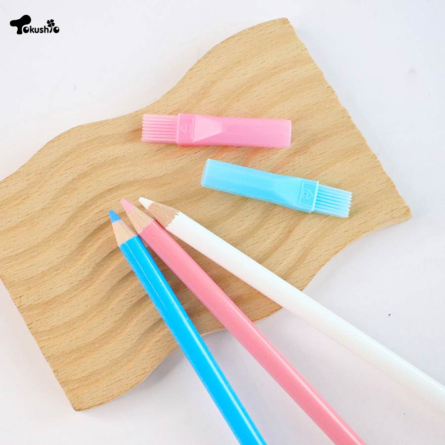 日本粉土筆,使用方式簡單好上手,可用削筆器削尖,屬於劃記淺記號顏色用,會因布料材質和劃記力道,畫出的深淺濃度會略有不同,描畫紙型或做記號均很方便,清除可用拍打或用清水洗濯。