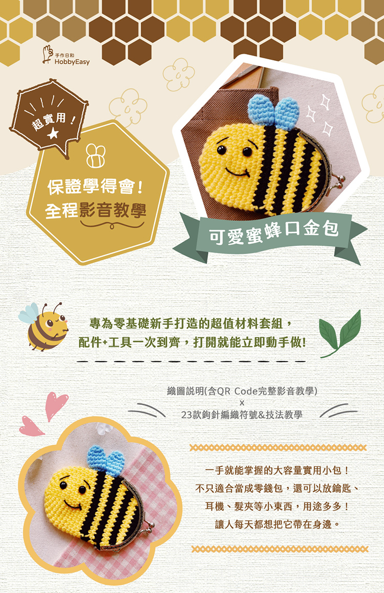 ★ C12064CR00012 鉤織小物材料包-可愛蜜蜂口金包